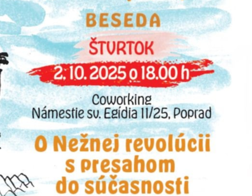 Pozývame na besedu O Nežnej revolúcii s presahom so súčasnosti s Jozefom Kočišom, aktivistom VPN v Poprade 1989. Už vo štvrtok 2. októbra 2025 o 18.00 v Coworking Poprad.